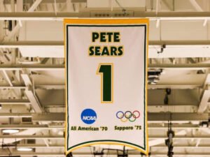 Along with banners highlighting the program’s only national championship and other NCAA appearances and SUNYAC championships, from now on Lakers fans will see the jersey No. 1 of Pete Sears hanging from the rafters of the arena.